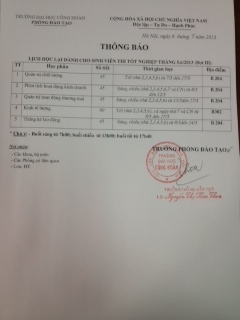 LỊCH HỌC LẠI DÀNH CHO SINH VIÊN THI TỐT NGHIỆP THÁNG 5.6/2013