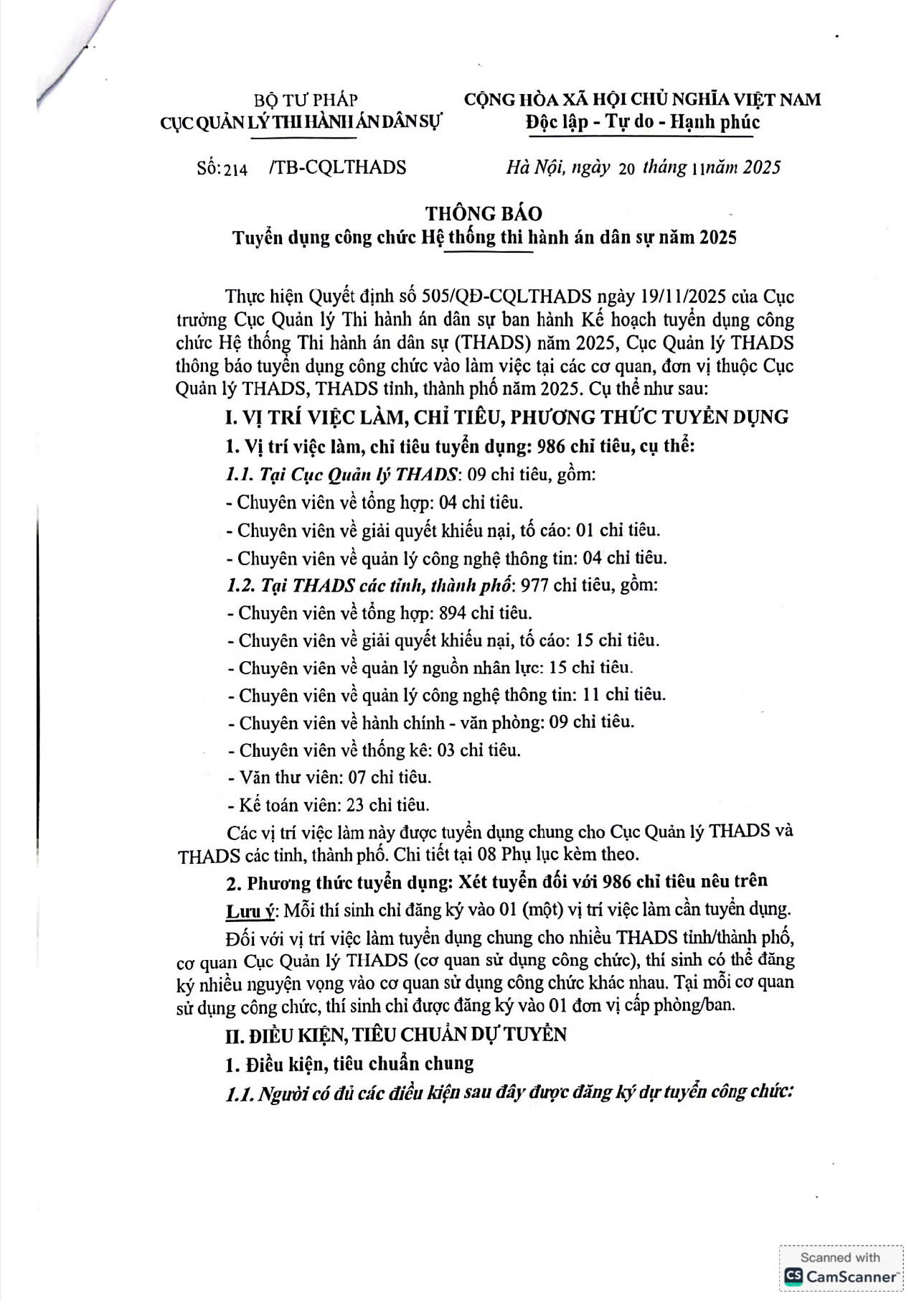 THÔNG BÁO TUYỂN DỤNG CÔNG CHỨC HỆ THỐNG THI HÀNH ÁN DÂN SỰ NĂM 2025
