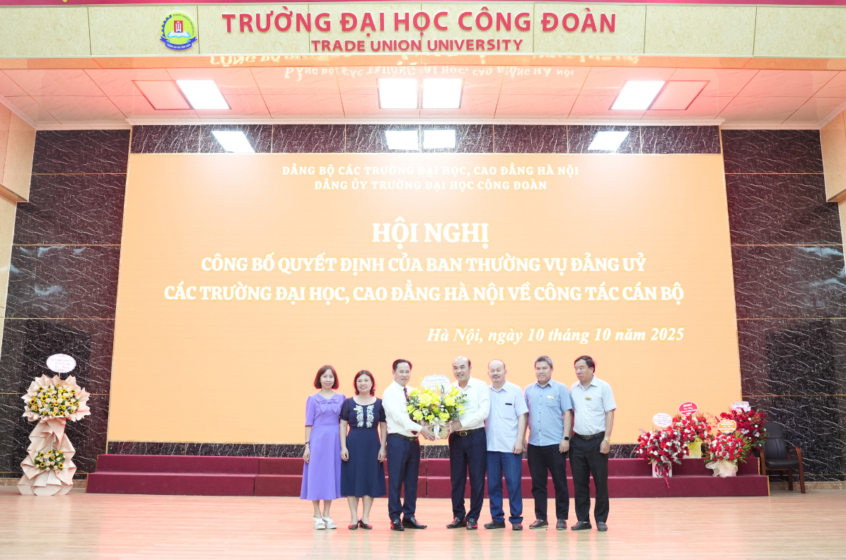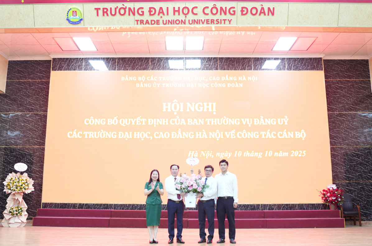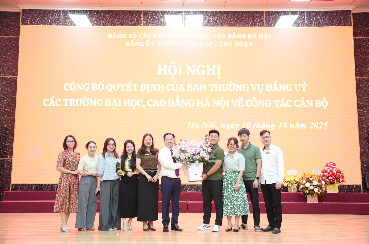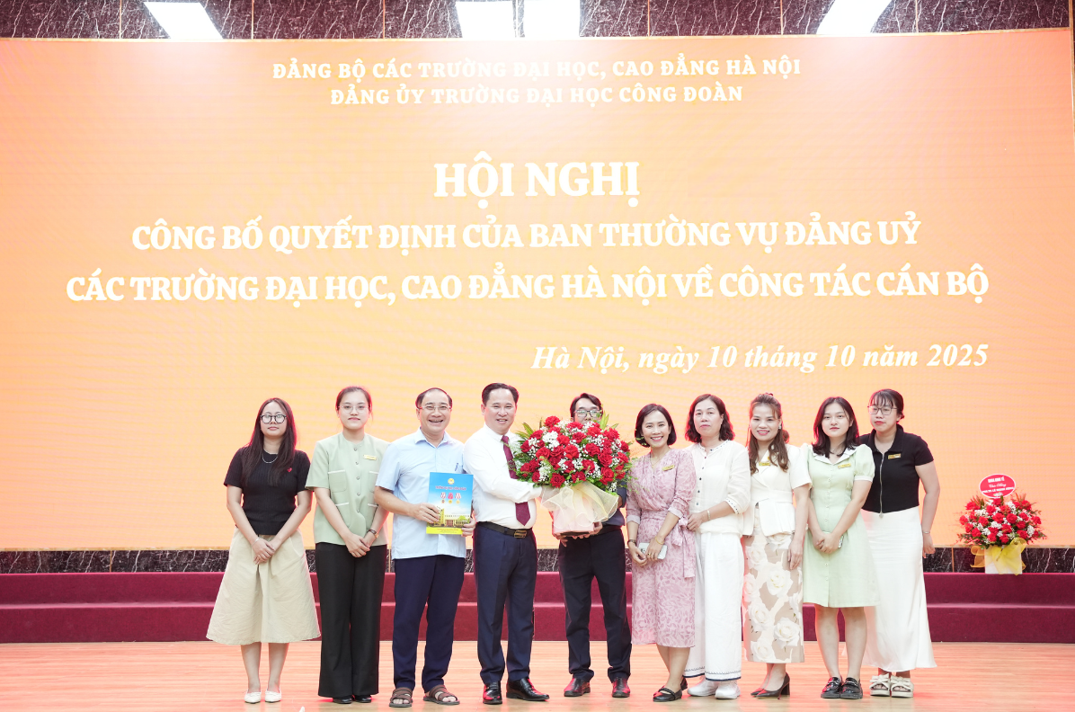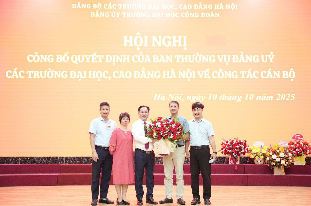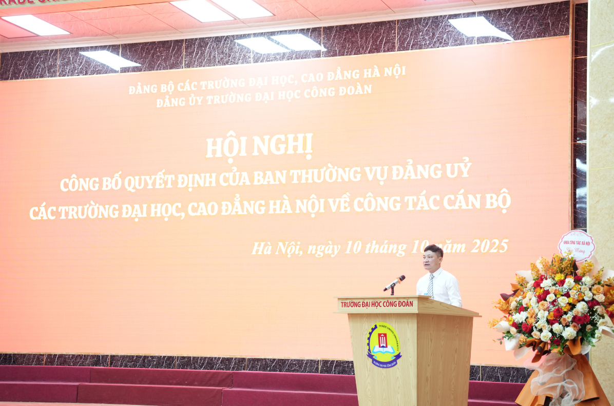 Ngày 10/10/2025, hòa trong không khí hân hoan của cả nước chào mừng ngày Giải phóng Thủ đô, trong niềm tự hào và phấn khởi hướng tới Đại hội đại biểu Đảng bộ Thành phố Hà Nội lần thứ XVIII nhiệm kỳ 2025 - 2030 và Đại hội Đại biểu toàn quốc lần thứ XIV của Đảng Cộng sản Việt Nam nhiệm kỳ 2026-2031, tại Trường Đại học Công đoàn diễn ra Hội nghị công bố Quyết định của Ban Thường vụ Đảng uỷ các trường đại học, cao đẳng Hà Nội về công tác cán bộ. Theo đó, Ban Thường vụ Đảng ủy các trường đại học, cao đẳng Hà Nội đã công bố quyết định về việc chuẩn y chức vụ Bí thư Đảng ủy Trường Đại học Công đoàn nhiệm kỳ 2025 - 2030 đối với đồng chí Lê Mạnh Hùng, Ủy viên BCH Đảng bộ các trường đại học, cao đẳng Hà Nội, Phó Bí thư Phụ trách Đảng ủy, Hiệu trưởng Trường Đại học Công đoàn.
