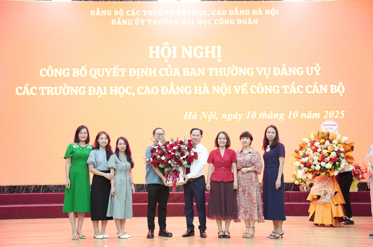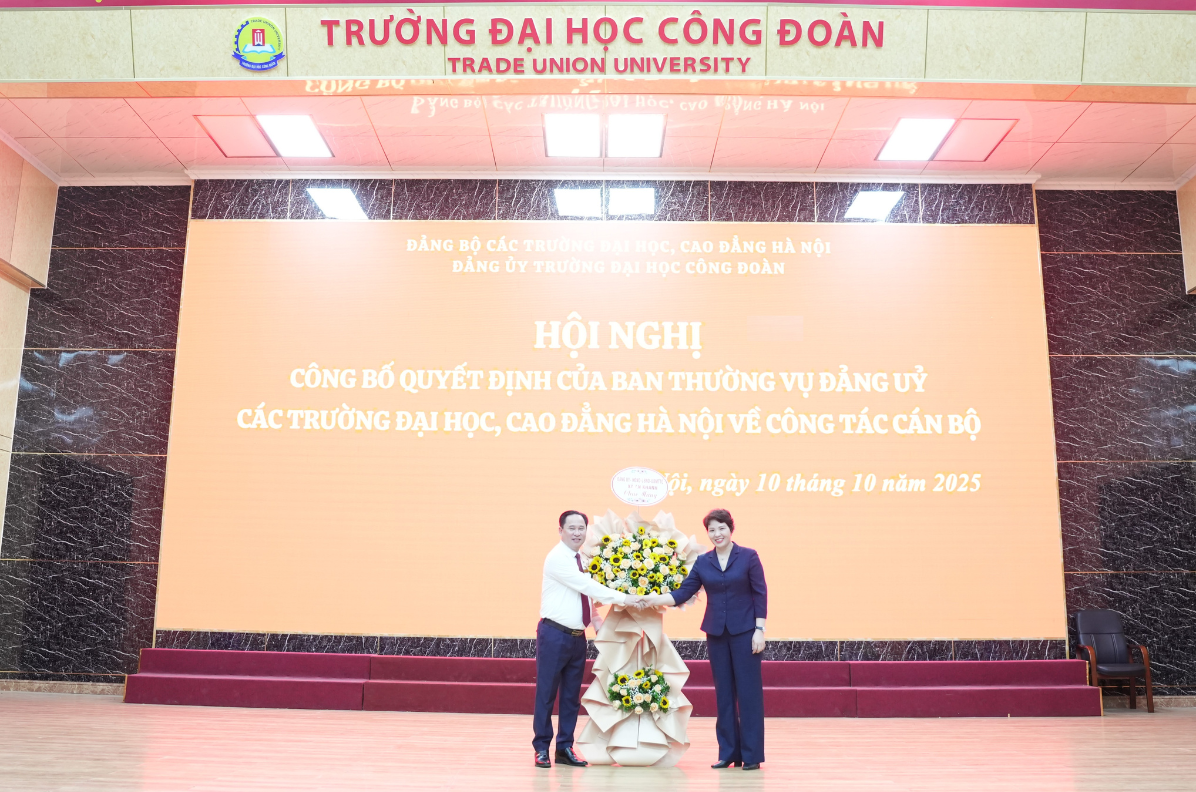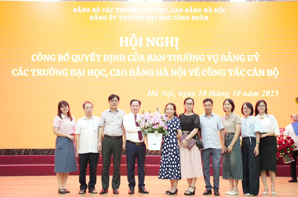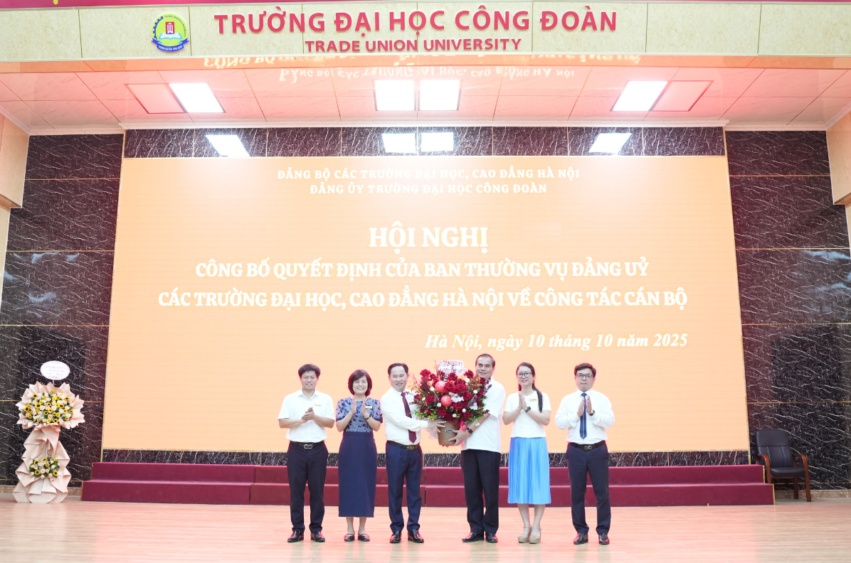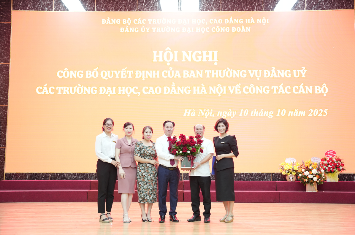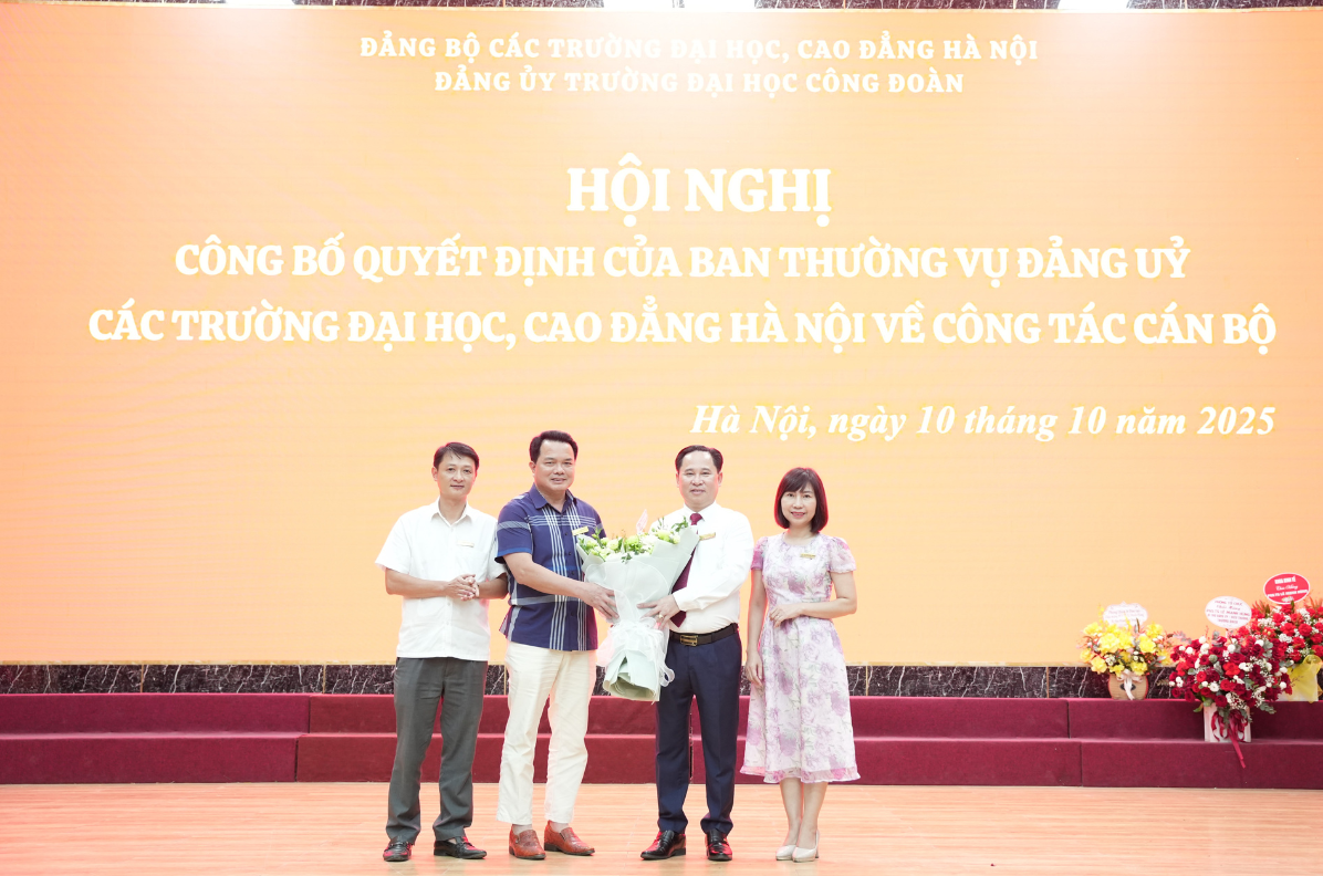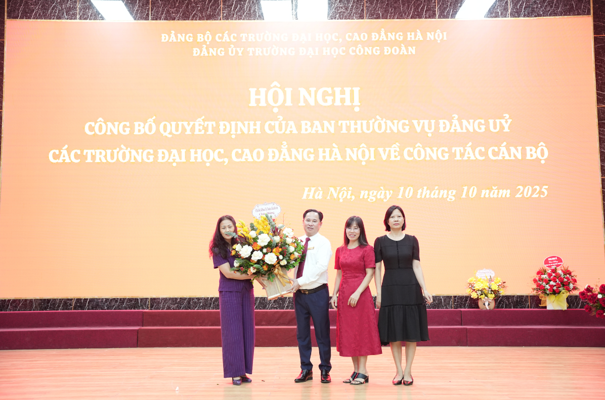 Ngày 10/10/2025, hòa trong không khí hân hoan của cả nước chào mừng ngày Giải phóng Thủ đô, trong niềm tự hào và phấn khởi hướng tới Đại hội đại biểu Đảng bộ Thành phố Hà Nội lần thứ XVIII nhiệm kỳ 2025 - 2030 và Đại hội Đại biểu toàn quốc lần thứ XIV của Đảng Cộng sản Việt Nam nhiệm kỳ 2026-2031, tại Trường Đại học Công đoàn diễn ra Hội nghị công bố Quyết định của Ban Thường vụ Đảng uỷ các trường đại học, cao đẳng Hà Nội về công tác cán bộ. Theo đó, Ban Thường vụ Đảng ủy các trường đại học, cao đẳng Hà Nội đã công bố quyết định về việc chuẩn y chức vụ Bí thư Đảng ủy Trường Đại học Công đoàn nhiệm kỳ 2025 - 2030 đối với đồng chí Lê Mạnh Hùng, Ủy viên BCH Đảng bộ các trường đại học, cao đẳng Hà Nội, Phó Bí thư Phụ trách Đảng ủy, Hiệu trưởng Trường Đại học Công đoàn.