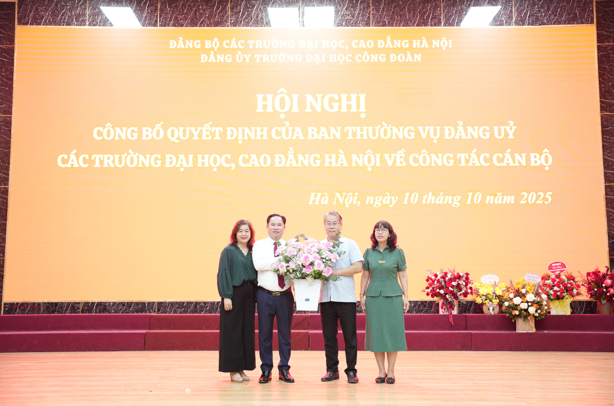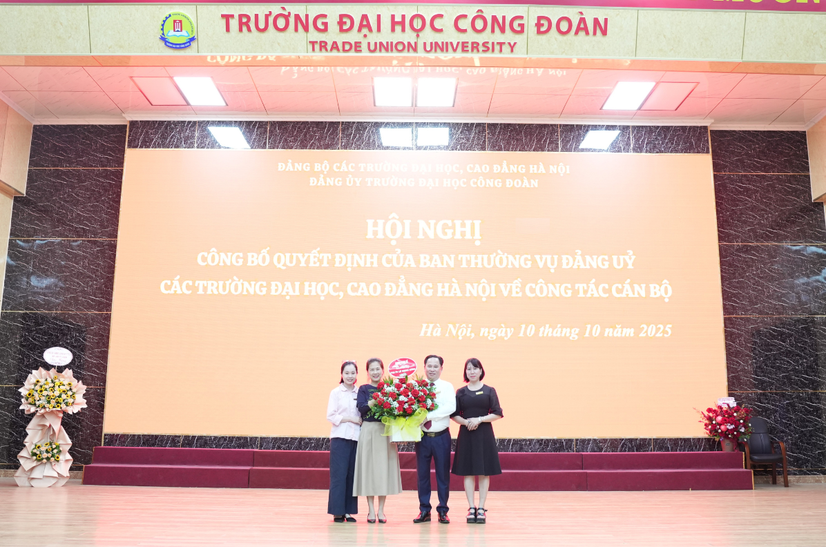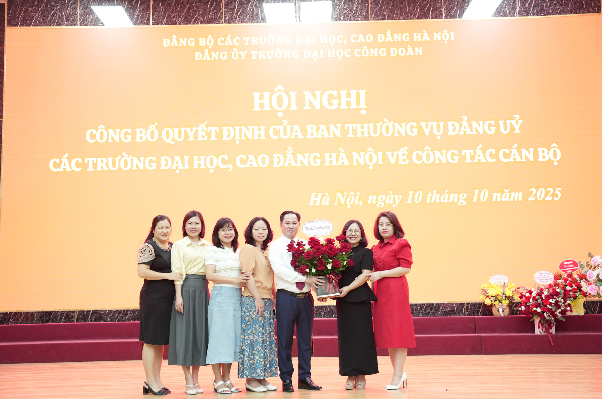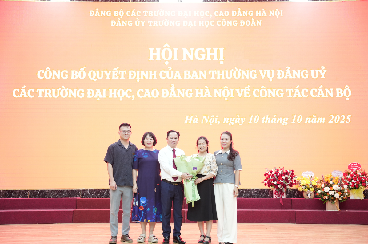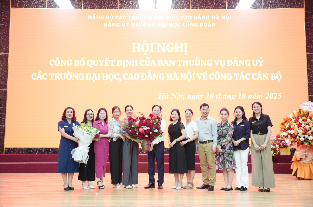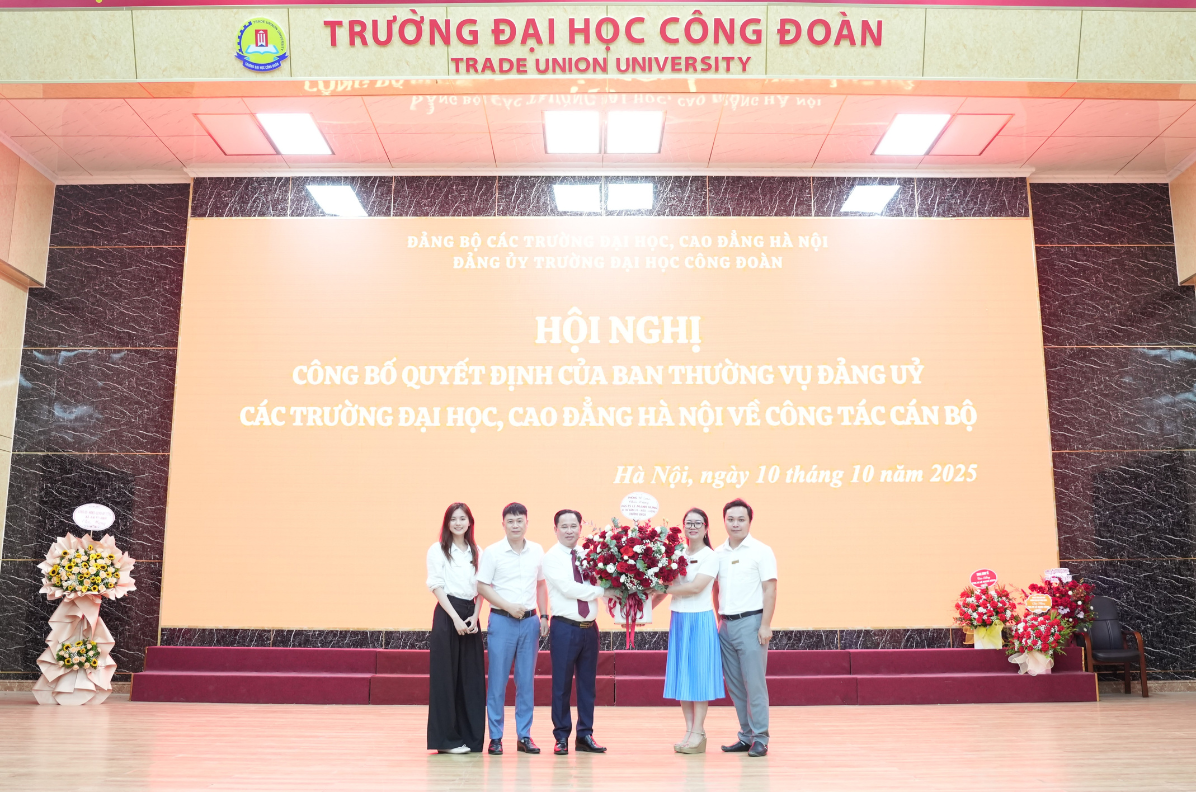 Ngày 10/10/2025, hòa trong không khí hân hoan của cả nước chào mừng ngày Giải phóng Thủ đô, trong niềm tự hào và phấn khởi hướng tới Đại hội đại biểu Đảng bộ Thành phố Hà Nội lần thứ XVIII nhiệm kỳ 2025 - 2030 và Đại hội Đại biểu toàn quốc lần thứ XIV của Đảng Cộng sản Việt Nam nhiệm kỳ 2026-2031, tại Trường Đại học Công đoàn diễn ra Hội nghị công bố Quyết định của Ban Thường vụ Đảng uỷ các trường đại học, cao đẳng Hà Nội về công tác cán bộ. Theo đó, Ban Thường vụ Đảng ủy các trường đại học, cao đẳng Hà Nội đã công bố quyết định về việc chuẩn y chức vụ Bí thư Đảng ủy Trường Đại học Công đoàn nhiệm kỳ 2025 - 2030 đối với đồng chí Lê Mạnh Hùng, Ủy viên BCH Đảng bộ các trường đại học, cao đẳng Hà Nội, Phó Bí thư Phụ trách Đảng ủy, Hiệu trưởng Trường Đại học Công đoàn.