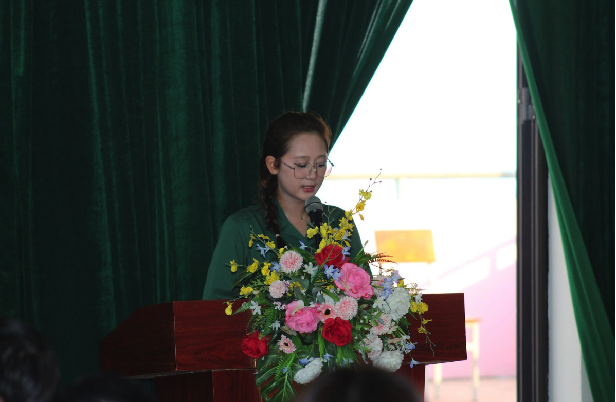 Sinh viên Phạm Minh Phương – Lớp trưởng QT33B, đại diện Ban cán sự phát biểu