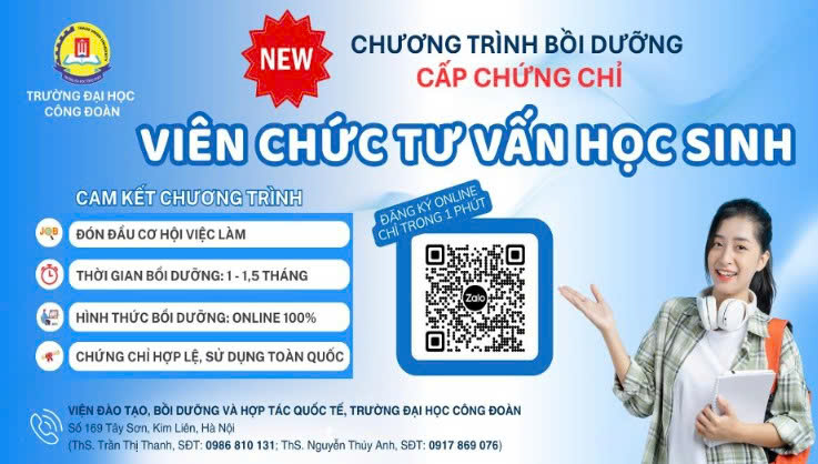 TRƯỜNG ĐẠI HỌC CÔNG ĐOÀN TUYỂN SINH KHÓA 2 CHƯƠNG TRÌNH BỒI DƯỠNG VIÊN CHỨC TƯ VẤN HỌC SINH
