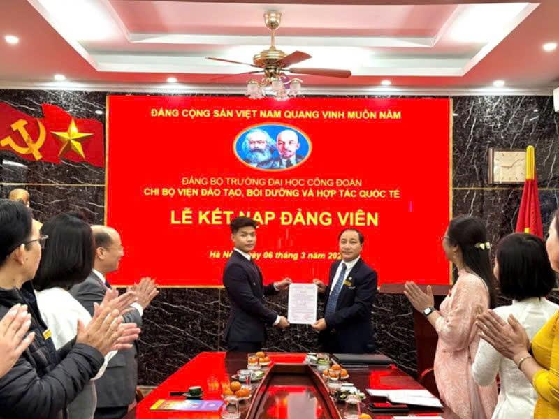 CHI BỘ VIỆN ĐÀO TẠO, BỒI DƯỠNG VÀ HỢP TÁC QUỐC TẾ KẾT NẠP ĐẢNG CHO HAI QUẦN CHÚNG ƯU TÚ CHƯƠNG TRÌNH CHẤT LƯỢNG CAO KHÓA ĐẦU TIÊN